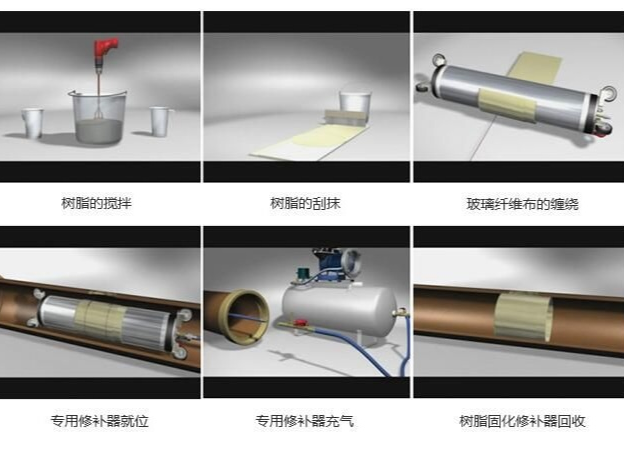 2、施工時間短,由于修復(fù)材料固化時間短,從樹脂混合到完成局部內(nèi)襯修復(fù)僅需數(shù)十分鐘,可在很短的時間內(nèi)完成工作;